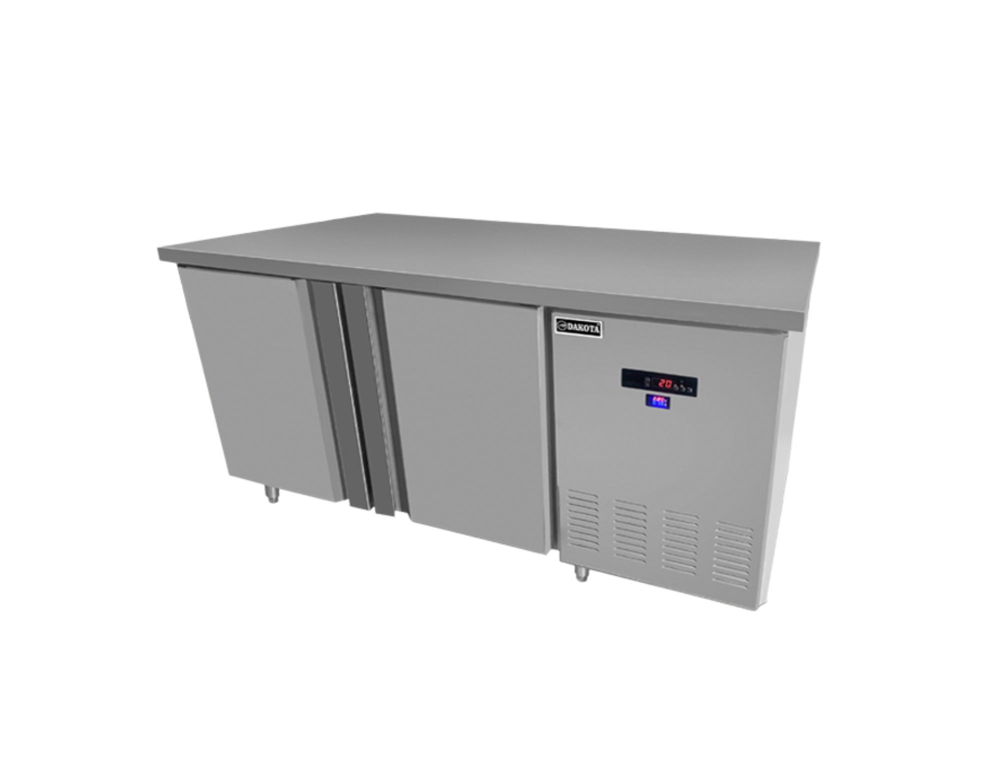La mesa refrigerada dual No Frost DKH-150F2 garantiza eficiencia y conservación óptima gracias a su sistema anti-escarcha que enfría por aire. Con 2 puertas, capacidad de 420 litros y temperatura regulable de 0°C a -12°C, es ideal para mantener alimentos frescos por más tiempo. Su estructura de acero inoxidable, motor de ⅓ HP y potencia de 340W la hacen perfecta para restaurantes, bares y cocinas industriales.